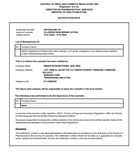 Ellgrow Whitening Lotion Diperakui Selamat Digunakan